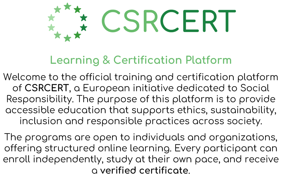 The CSR certification course adapted for participants requiring hearing support (subtitles, transcripts, accessible audio).